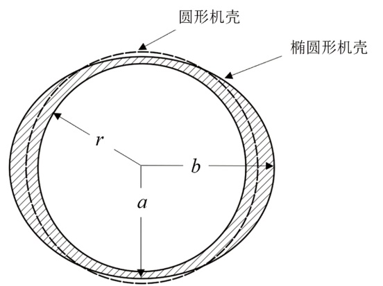 (2) 式中:a、b分别为最小、最大间隙处的半径;r为叶轮半径。 λ的取值在0~1之间,0代表均匀间隙,即机壳为正圆形,1代表极不均匀间隙,可表示为短半轴等于叶轮半径的椭圆形。本文选取0、0.5、0.8这3种非均匀度的间隙进行研究。